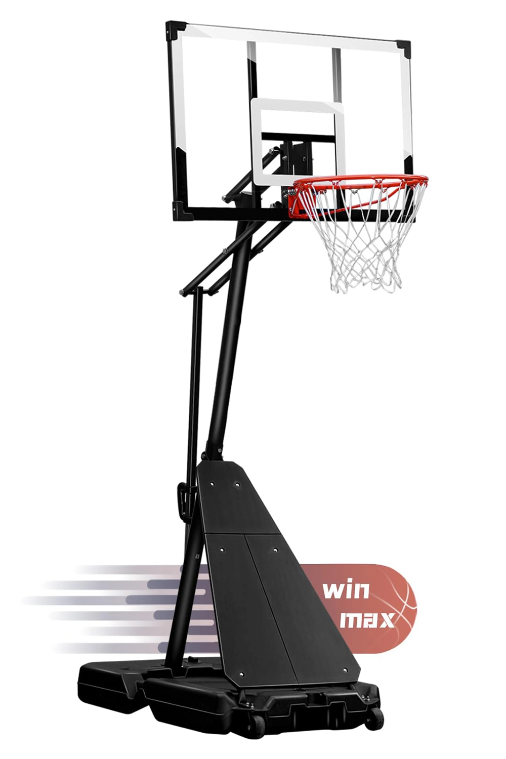 Portable basketball hoop with shatterproof backboard and larger base, perfect for youth and adults to enjoy the game in backyard, driveway, or poolside.