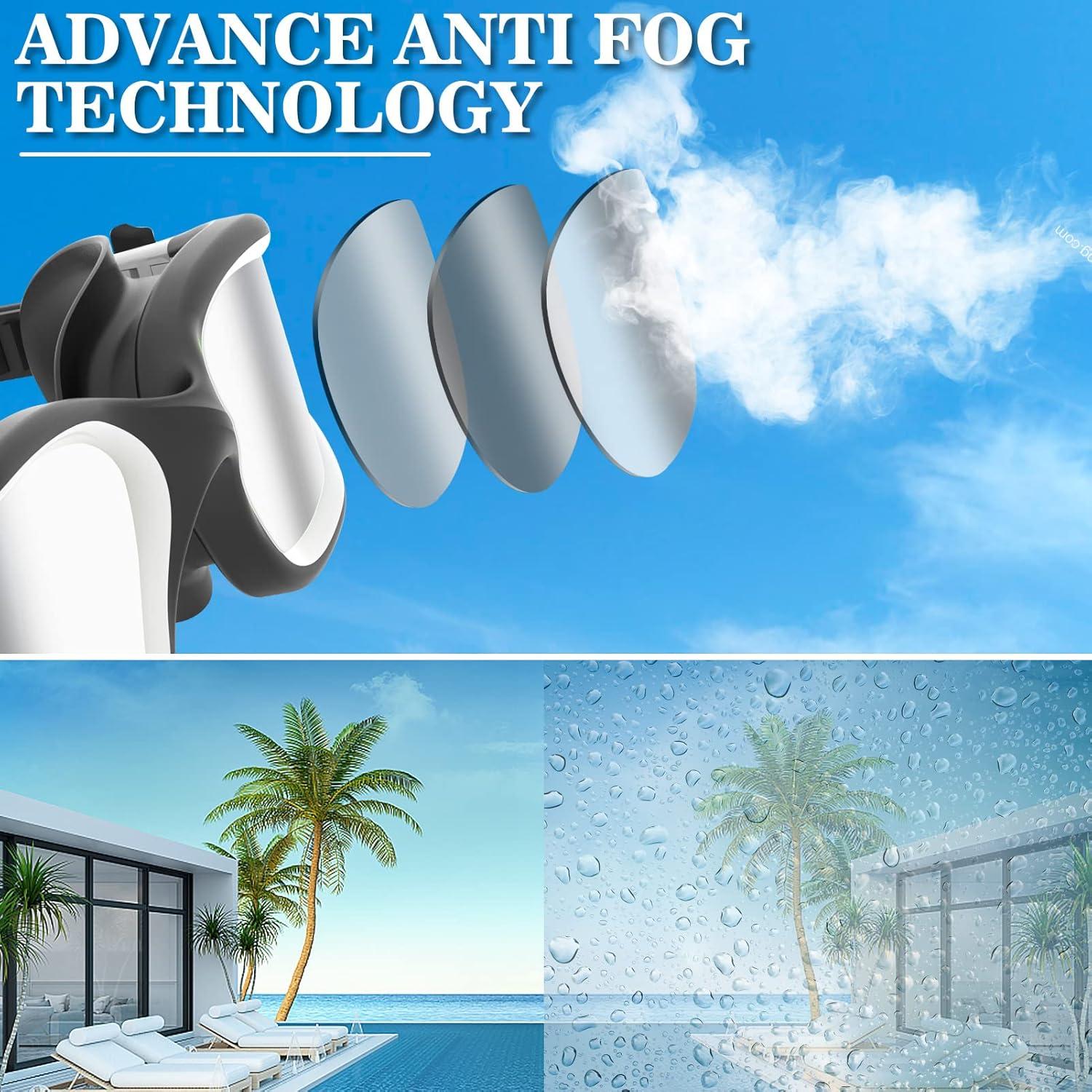 🍀【Anti Fog Curved Lenses & Streamline Design】: impact resistant PC lens with latest environmental anti fog chemicals technology, offer you a 180° unrestricted clear and comfortable vision without distortion. Streamline Design enhances your smooth swim performance. The safety glass technology also protects the lenses against falling and splintering
