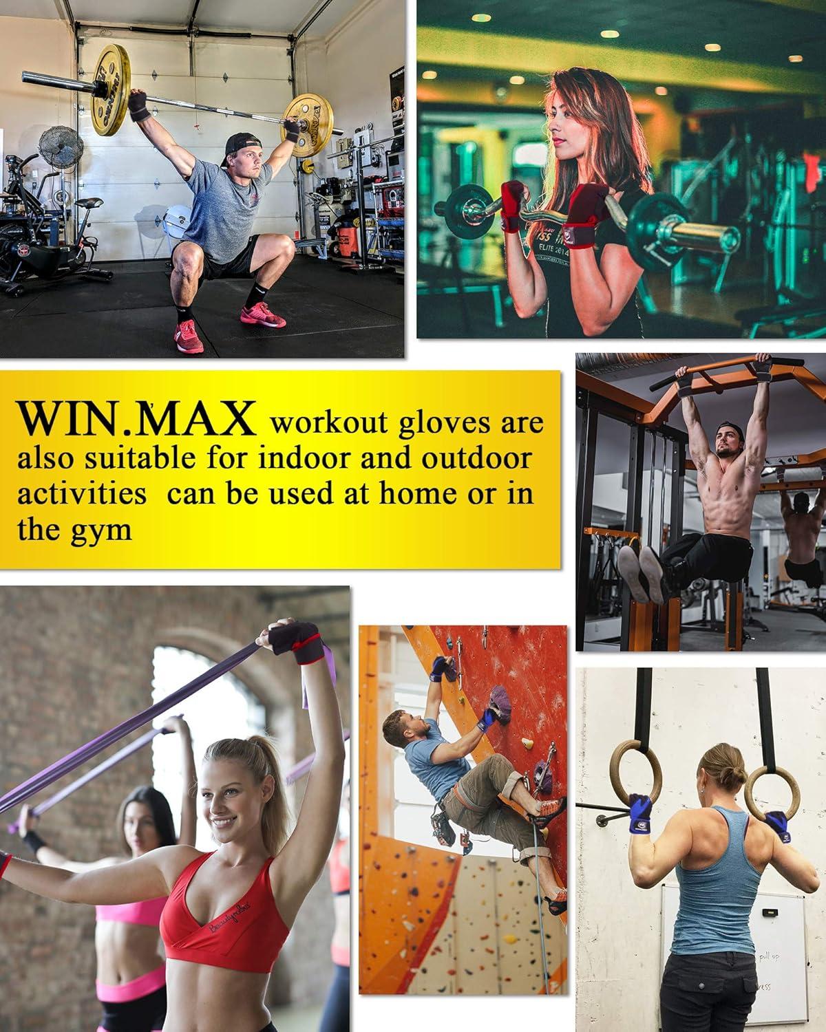 WIN.MAX Workout Gloves, Weight Lifting Gloves, Gym Gloves with Wrist Support, Full Palm Protection & Extra Grip for Powerlifting, Training, Fitness, Pull-ups, Exercise for Men Women
